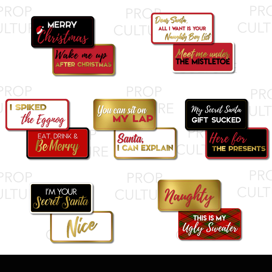 This pack includes 7 double-sided props (14 total designs) UV printed on lightweight, durable 5mm PVC. Measuring 9.5" × 4.75", these props add festive flair to any event while holding up to constant use, spirited guests, and back-to-back holiday photo ops.
